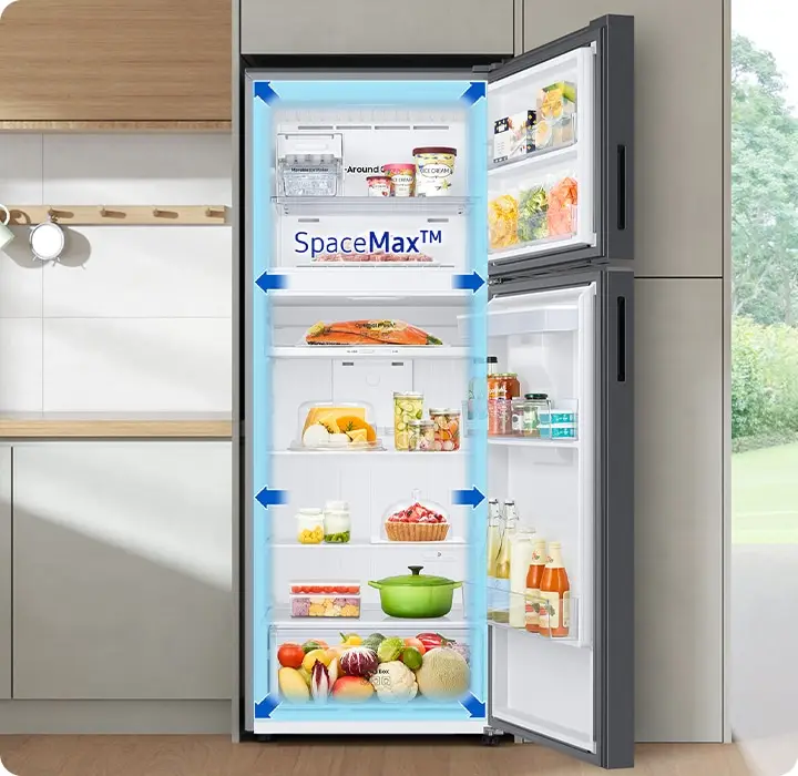 Daha fazla kapasiteye sahip geniş iç alanı sayesinde daha fazla yiyecek saklayın. BenzersizSpaceMax™ teknolojisi, yüksek üretanlı özel bir yalıtım kullandığından, enerji verimliliğinden taviz vermeden duvarların çok daha ince olmasını sağlar. Böylece daha fazla saklama alanı yaratır.